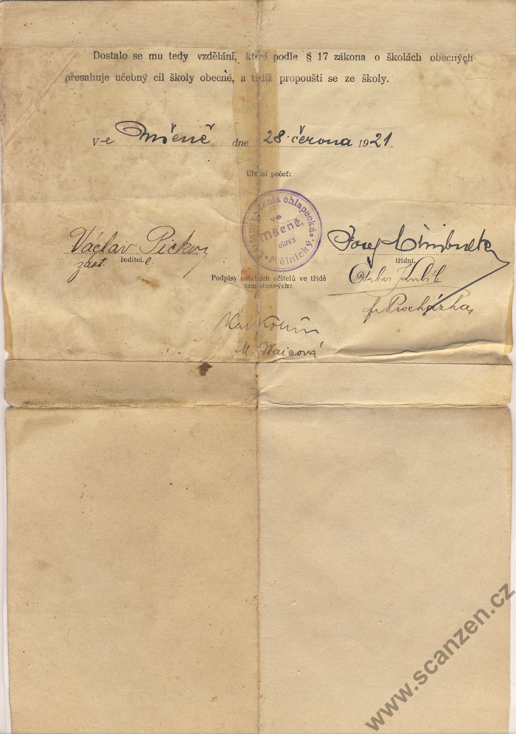 Vysvědčení propouštěcí (1921) p1