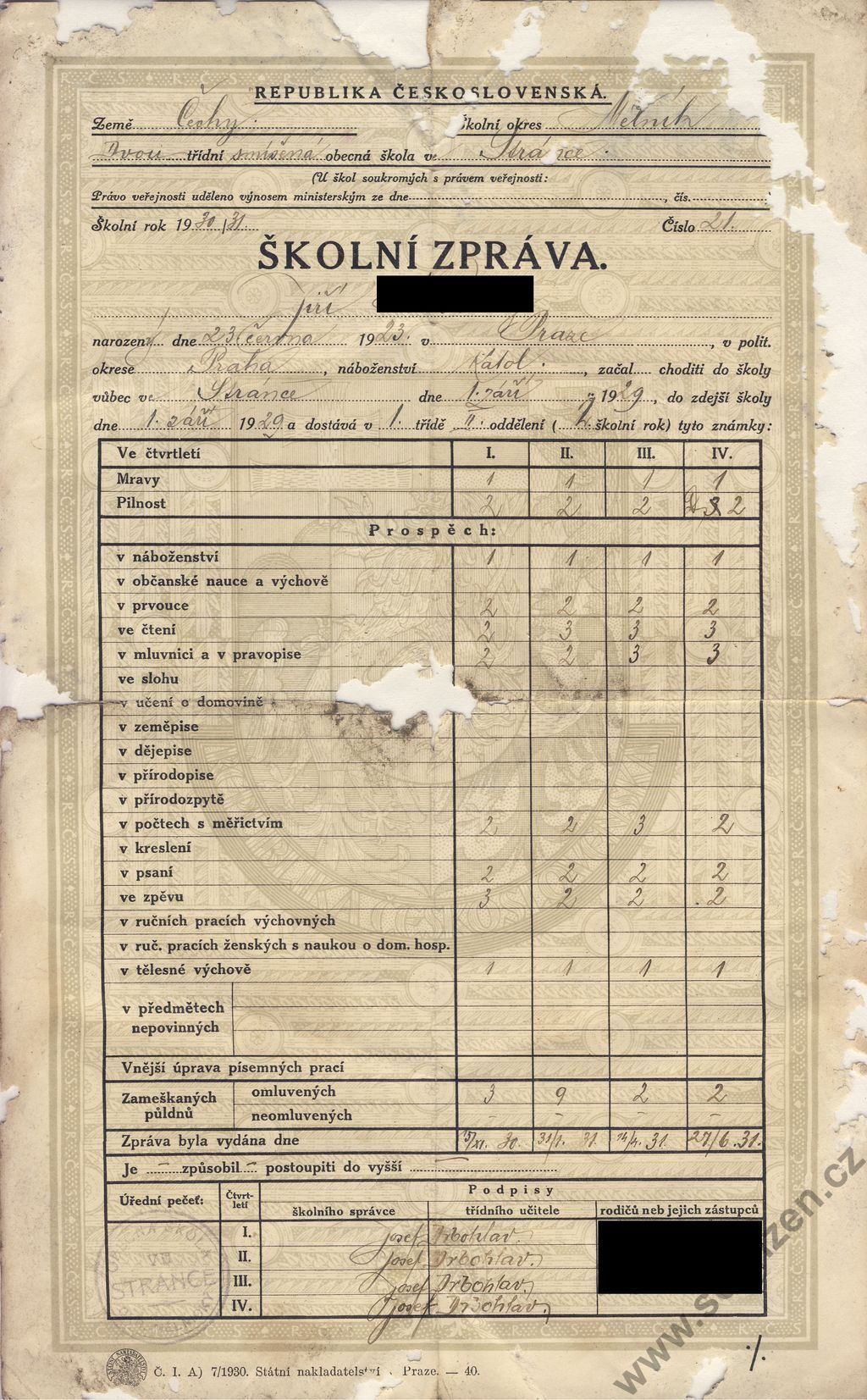 Školní zpráva (1929) p1