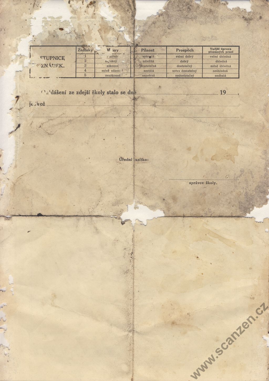 Propouštěcí vysvědčení (1919) p1